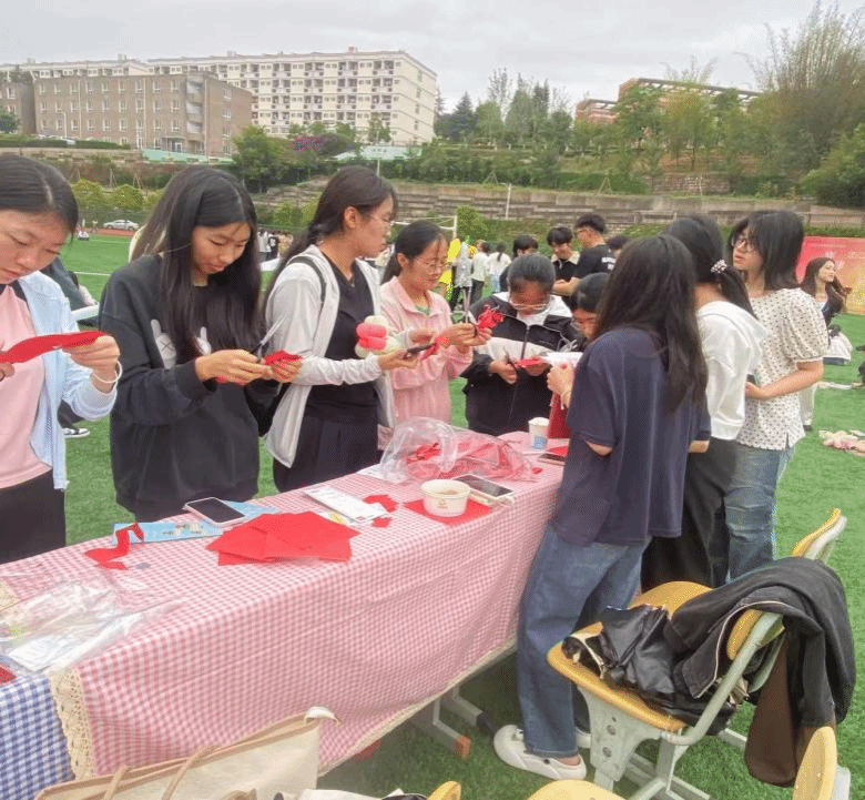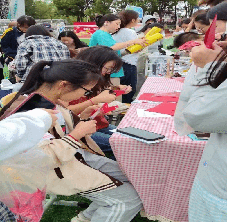 本次游园活动以轻松有趣的形式搭建传统文化传播平台,让同学们在动手实践中领略非遗魅力,在互动交流中丰富校园生活。同学们踊跃参与,在田径场解锁剪纸乐趣,收获满满的欢乐与成长!