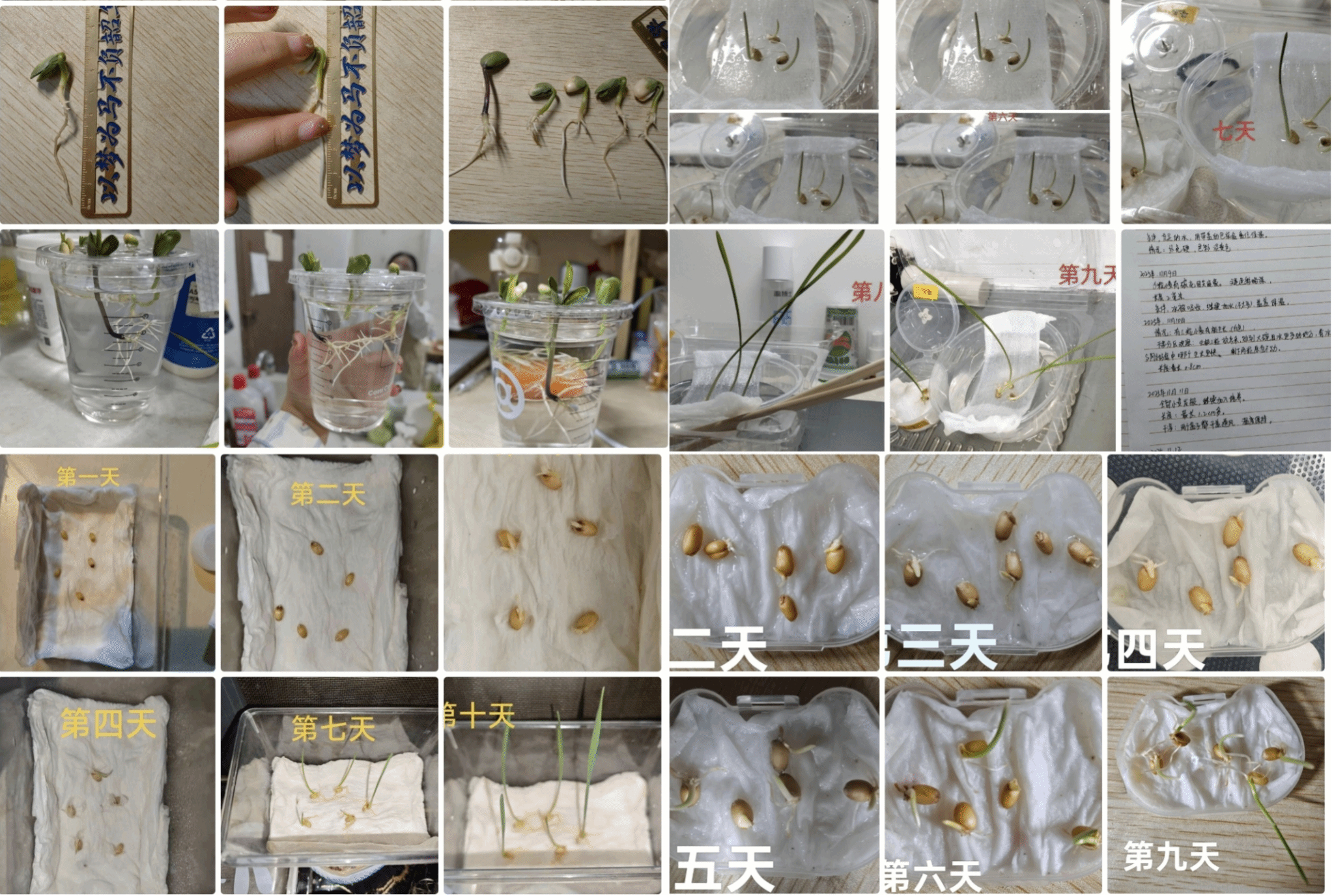 在本次活动中,同学们首先参加了水培种植的培训课程,随后亲自实践了从种子催芽到幼苗培育的完整过程。接着,各位同学以手写种植日志的形式,详细记录了植物破土而出、生根发芽、长出叶片的早期生长数据。活动专属相册中丰富的影像资料,构建了同学们共同分享的成长数据库。最终,在活动的成果展示环节,一盆盆生机勃勃的水培植物,生动地展现了同学们的学习成果。